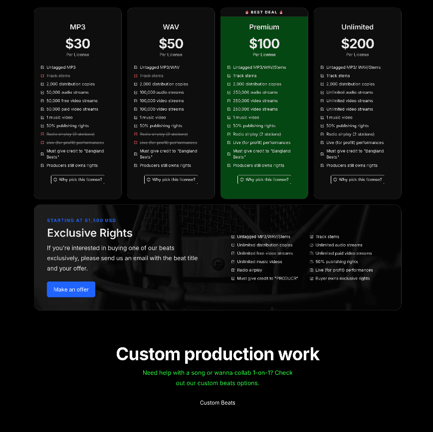 But, besides the stems, you’ll also get better user rights. This allows you to distribute the song across multiple streaming platforms, maximize your exposure, and see a higher return on investment.